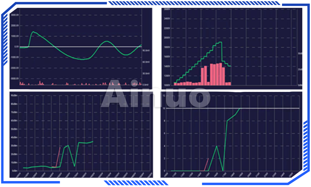 艾诺仪器深耕电机及电气测试领域多年,聚焦新能源汽车驱动电机在高电压测试中面临的绝缘可靠性挑战,专项研发推出高精度高稳定性电机匝间绝缘测试系统解决方案。该方案集成高精度高压脉冲发生与纳秒级波形采集技术,可精准执行匝间绝缘及局部放电(PD)检测。同时,通过对标准波形与测试波形进行多参数智能比对,涵盖面积差、差积、相位差及电晕特征等,高效识别绝缘薄弱点、匝间短路、焊接不良及工艺瑕疵等潜在缺陷,为高压驱动电机的绝缘性能验证提供安全、全面、可靠的数据支撑,显著提升测试效率与缺陷诊断精准度。