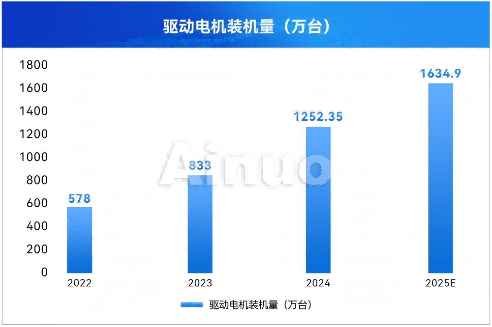 中国新能源汽车产业规模全球领先,2025年产销达1652万辆,市场渗透率超50%。这一趋势直接带动了核心部件驱动电机市场的强劲增长与技术迭代。2025年国内驱动电机装机量达1635万台,年复合增长率达41.4%。