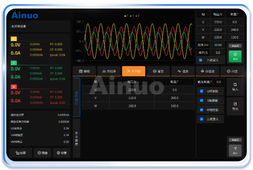 艾诺仪器深耕测试行业多年,深度了解充电模块及充电桩研发生产过程中的测试难点,为之专项研发推出了MW级大功率测试方案ANBGS,以‘’大功率测试,智能化操作,高精度验证‘’为核心,助力企业高效通过认证。