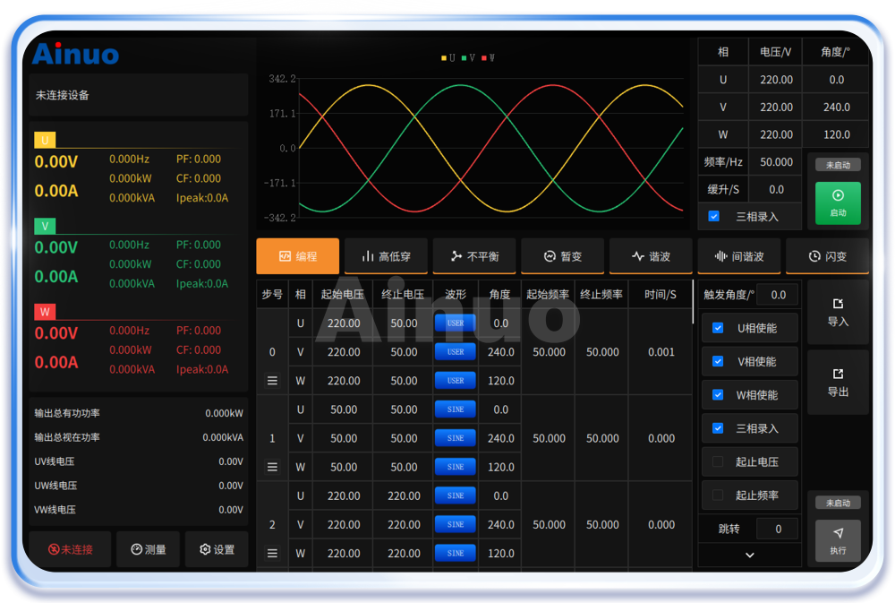 艾诺仪器深耕测试行业多年,深度了解充电模块及充电桩研发生产过程中的测试难点,为之专项研发推出了MW级大功率测试方案ANBGS,以‘’大功率测试,智能化操作,高精度验证‘’为核心,助力企业高效通过认证。